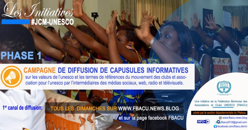 - Rejoindre un club, un centre ou une association UNESCO : Ils relaient sur le terrain les idéaux, les initiatives et les opportunités de l’Organisation. Pour savoir s’il en existe un près de chez vous, contactez la fédération béninoise fbacu2018@gmail.com si vous êtes au Bénin. Ou la fédération mondiale fmacu@unesco.org si vous êtes ailleurs